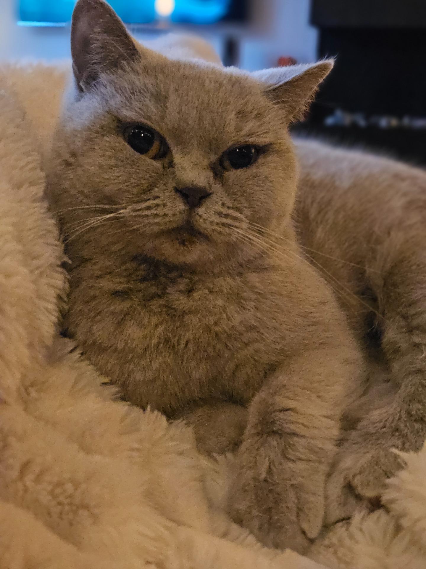 Nadat onze jongste ook naar school ging kwam er weer wat meer rust in huis en het besluit om ons gezin uit te breiden met een Brits Korthaar, een maatje voor Bruce, was dan ook snel genomen. Tijdens onze zoektocht naar een nieuw gezinslid werd onze passie voor het ras weer aangewakkerd. We werden wederom geconfronteerd met een groot aanbod Brits Korthaar kittens van onbetrouwbare fokkers. De behoefte aan het leveren van een positieve bijdrage aan het behoud en verbeteren van dit prachtige ras nam toe. Uiteindelijk zijn we opzoek gegaan naar een poes, waar we eventueel af en toe een nestje mee konden krijgen en zijn we in contact gekomen met cattery Uldwyna's. In 2018 is Bo bij ons komen wonen. Bo is uitgegroeid tot een mooie dame. De eerste 2 jaar van haar leven was zij wat meer op zichzelf al was ze wel altijd bij ons in de buurt en graag onder de mensen. Naarmate ze ouder werd kwamen er steeds meer momenten dat zij bij ons op de bank of op schoot kroop en is zij verandert in een echte kroelkat....mits zij daar zin in heeft! Ze kan zich dan ook als een echte diva gedragen door je te negeren of juist de aandacht op te eisen. Kenmerkend is haar speelse, soms wat ondeugende gedrag maar ondanks dat is ze een onwijs lieve poes. Bo is een Lilac poes, niet heel groot maar daarin tegen heeft ze een prachtige uitstraling en vacht. Ze is gek op de kinderen, moedert over Bruce en Joy.